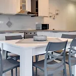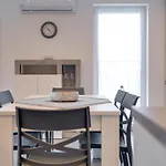 Dieses Apartment bietet seinen Gästen die Annehmlichkeiten von Selbstversorgern, wie eine voll ausgestattete Küche und einen Essbereich.